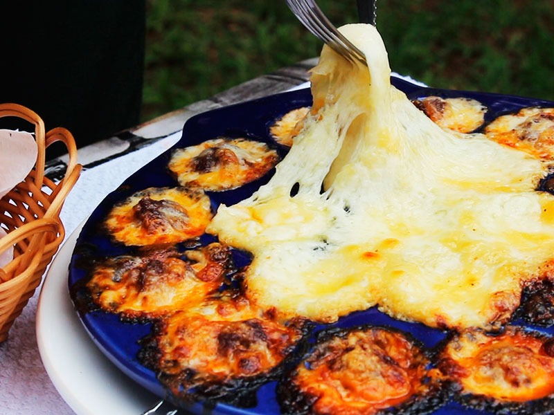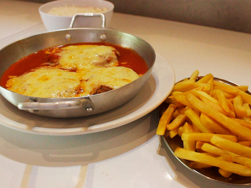 provolone gratinado, mini almôndegas ao molho de tomate caseiro com queijo derretido (acompanha pão)