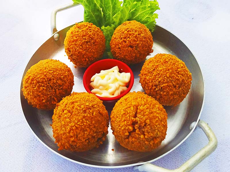Delicioso bolinho de carne seca com catupiry recheado de muçarela e empanado na farinha panko, crocante até a última mordida, acompanha maionese de alho. (6 unidades)