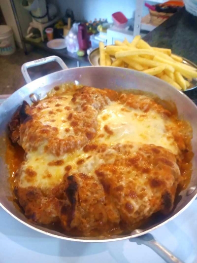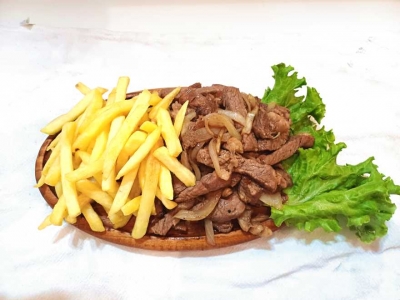 Acompanha arroz, feijão, farofa, vinagrete e fritas. Serve 2 pessoas.